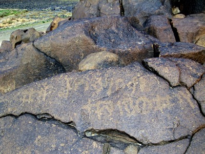 Notes: Al-Namārah itself is an "island" in a basin at the confluence of the Wādī al-Ṣawṭ and the Wādī al-Shām. The island rises to a considerable height above the wadi bed. On it's top are the ruins of a Roman fort the outlines of which, and the square north-east and south-west towers, can still be made out. However, much of the masonry has been reused to build a mediaeval mausoleum, including a lintel with an unfinished Greek inscription mentioning Marcus Aurelius (Waddington 1870: no. 2264) and stone doors. There are many Safaitic, Greek and two Latin graffiti on the slopes of the island and the banks of the wadi. In antiquity, there were small dams, cisterns, wells and diversion channels to trap the water and to lead it to nearby fields, see Macdonald 2009.