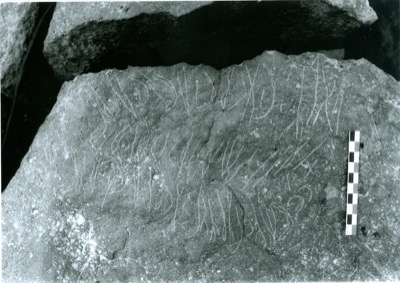 Notes: Al-Mrōshan consists of four long, low mounds, running roughly east-west in a flat area where the Wādī al-Gharz spreads out. These mounds create a series of "gorges" perhaps 3 m high in the wadi which is otherwise very flat and at this point hardly distinguishable from the surrounding area, the "wadi-bed" consisting of several channels approximately 30–80 cm deep and 4–10 m wide. The southerly three mounds are covered with graves and enclosures. Much of the rock is not suitable for inscribing. It was visited in 1995 by the Safaitic Epigraphic Survey Programme and all the published texts it rediscovered came from the most northerly of the southern three mounds, and most were concentrated at its eastern end.