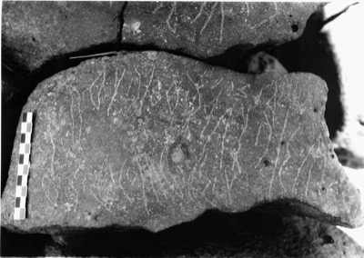 Notes: Al-Mrōshan consists of four long, low mounds, running roughly east-west in a flat area where the Wādī al-Gharz spreads out. These mounds create a series of "gorges" perhaps 3 m high in the wadi which is otherwise very flat and at this point hardly distinguishable from the surrounding area, the "wadi-bed" consisting of several channels approximately 30–80 cm deep and 4–10 m wide. The southerly three mounds are covered with graves and enclosures. Much of the rock is not suitable for inscribing. It was visited in 1995 by the Safaitic Epigraphic Survey Programme and all the published texts it rediscovered came from the most northerly of the southern three mounds, and most were concentrated at its eastern end.