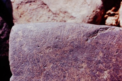 Notes: Al-ʿĪsāwī is the name of a probably ancient well between two headlands on the eastern side of the Wādī Shām as it runs northwards from the modern Al-Namārah dam to the Ruḥbah. The well is large, stone lined and with stone water-channels running from it. The main concentration of published inscriptions is on the top of the northern headland, but there also many inscriptions on its south-west slopes, coming down to the well and on the southern headland, on the crest of which is a stone tower.