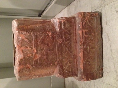 The remains of a Dadanitic inscription on a fragment of a pillar. It was found by Julius Euting
