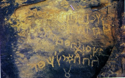 The third line is the most difficult to interpret. Tentatively, we would relate ṯġb to Arabic ṯaġaba “to slaughter and bleed (an animal)” taking it as a contemptuous metaphor for killing someone. The next six letters presumably give the name or title of the person he killed. The h could be the definite article but it is difficult to interpret what follows. The w cannot represent a vowel in the Taymanitic orthography and so h-kdwrt would make a curious name. The third person singular enclitic pronoun, –h, after ʾṯr in the next line must refer back to h-kdwrt and so precludes reading it as two names, hkd w rt. Although it is much longer than the others, the vertical line following the t can only be a word-divider, since no letter in the Taymanitic alphabet has this form.