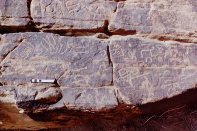 King (1990: 234–235) commented: "Written down the rock and turning to the right. qnʿ, is not in Harding 1971. The text is incomplete".